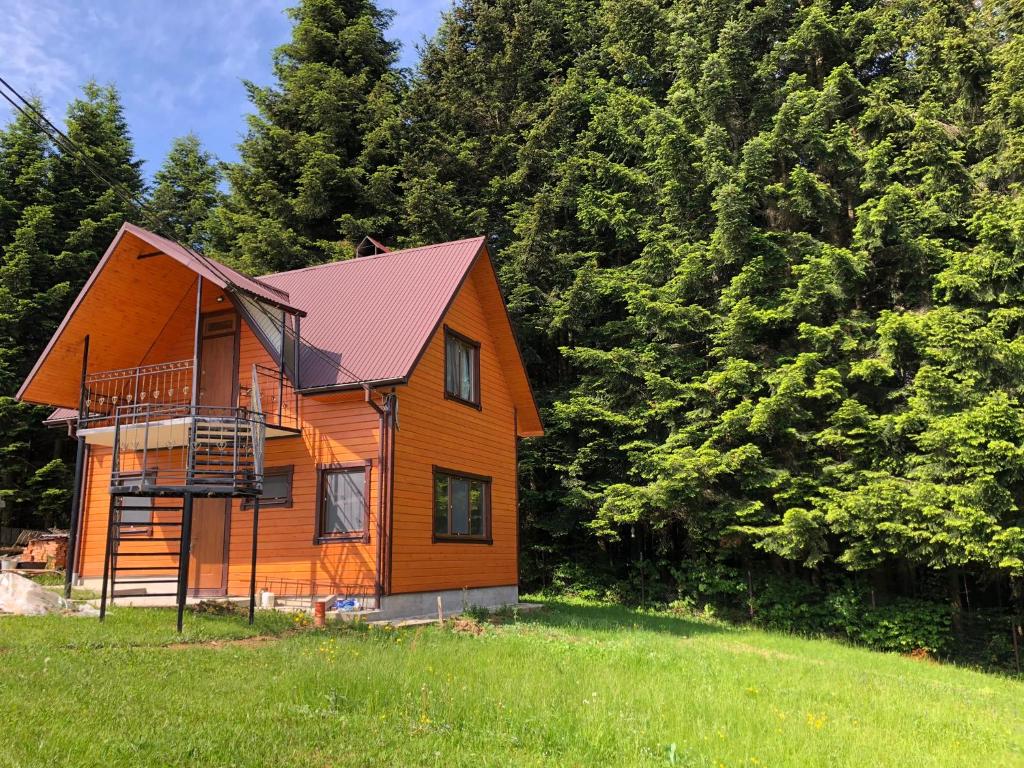 "Місце розташування взагалі казка. Ліс поруч, територія загороджена, ніхто чужий не прийде. Господарі привітні, наш будиночок з 1 спальнею був зайнятий, нас без доплати поселили в більший дім, який мегакласний. У домі є абсолютно все для комфортного проживання, весь посуд, холодильники два, туалет на 1 на 2 поверсі. До центру трішки є пройтись, вниз спускатися взагалі без проблем, наверх трішки важче, але ми ішли назад через ліс. Райське місце, спів пташок і тиша. Хто хоче відпочити душею - рекомендую."